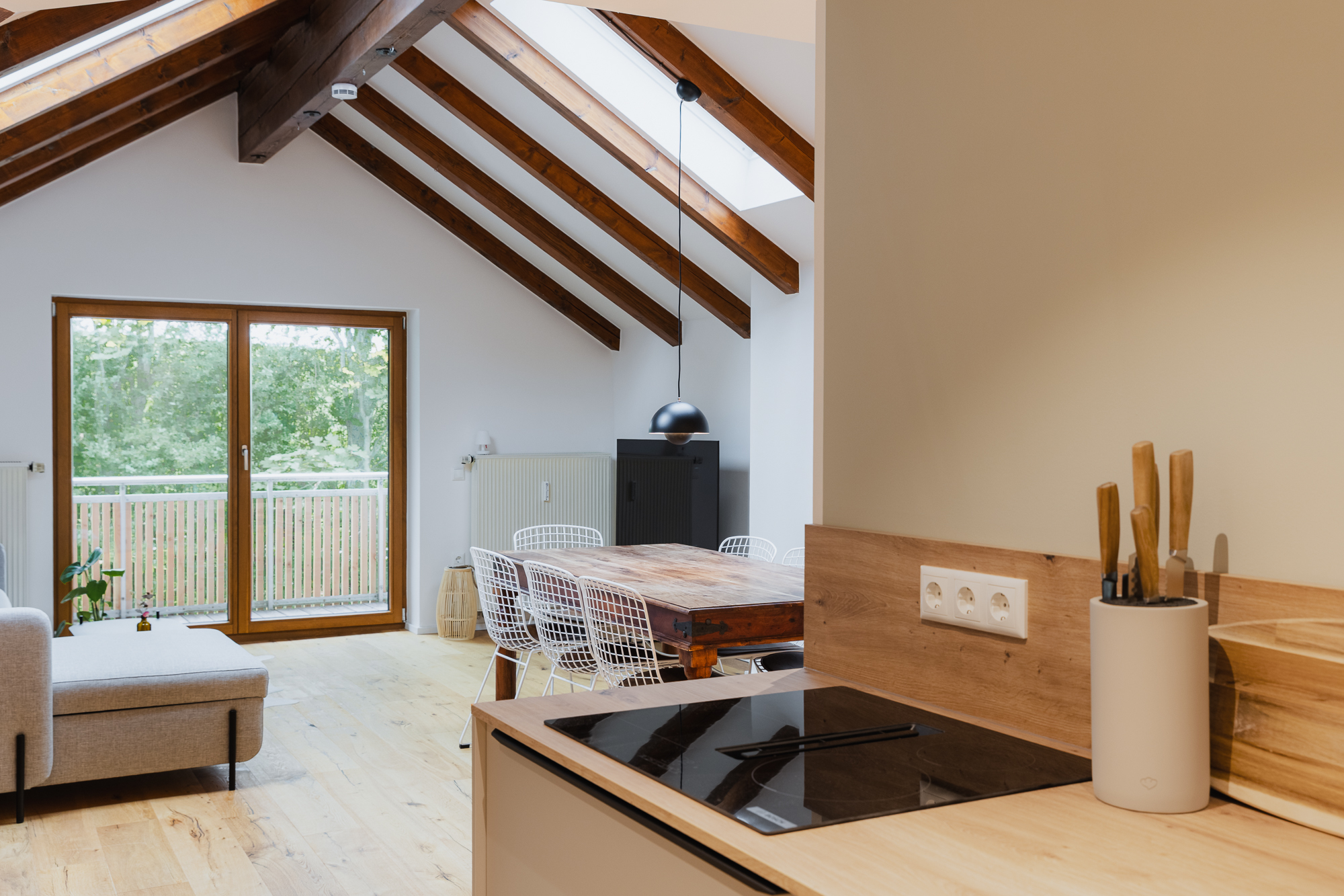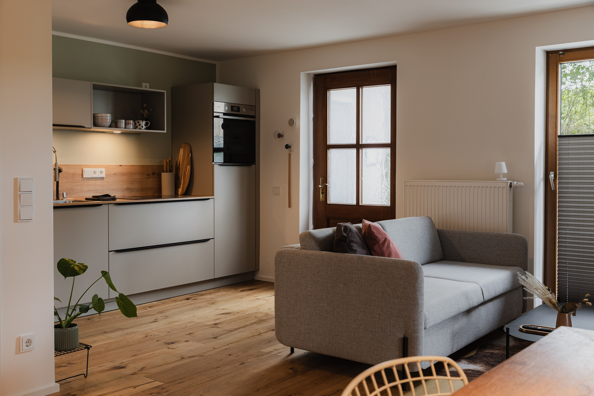 Von der voll ausgestatteten Küche über bequeme Boxspringbetten bis hin zum modernen Bad und dem privaten Balkon oder der Terrasse – du kannst dich rundum wie zu Hause fühlen. Und das Beste: Der große Garten steht dir offen – zum Yoga am Morgen, zum Relaxen in der Sonne oder für gemeinsame Zeit beim Spielen, Lesen oder einfach Nichtstun. Ein Ort zum Durchatmen – drinnen wie draußen.